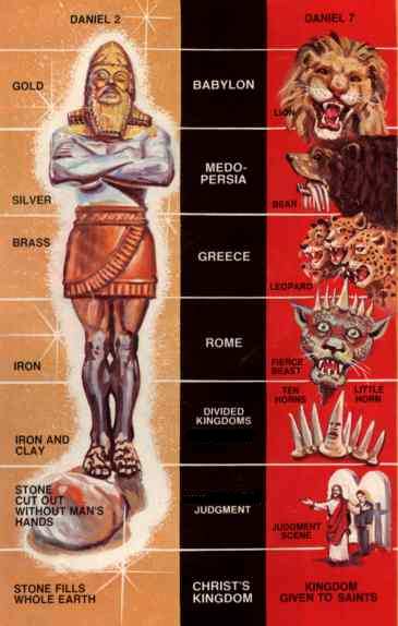 These characteristics are very fiting to the responding power. Babylon was at first no different than any other kingdom after, they we’re all decribed as animal like, but Babylon through Neb. was humbled and made upright and even given a heart like a man; what a testament to what God is able to do in us. Babylon’s conquering days were over. Don’t know much about the Medes and Persian, wonder if the bear character applies to it’s somewhat uprightness and maybe protective power. We know greece was known for it’s speed like a leapord; and Rome for it’s cruelity and the fear it installed in people as it “devouried” it’s people. This dream conincided with the staute dream, even the material mentioned describes the corresponding nation; for example iron rightly identifies the power of Rome, Gold Babylon, brozne for the meads and Persians and silver for the Greeks. It really would be easy to identify each animal or metal to the corresponding nation looking back at it through history; therefore the bk of Danile would of been opened or made better sense to the people of the future/ or those of our times. I guess God intended that to help reassure his last day people that He is in control of powers and times. We could trust that He is able to carry us through.